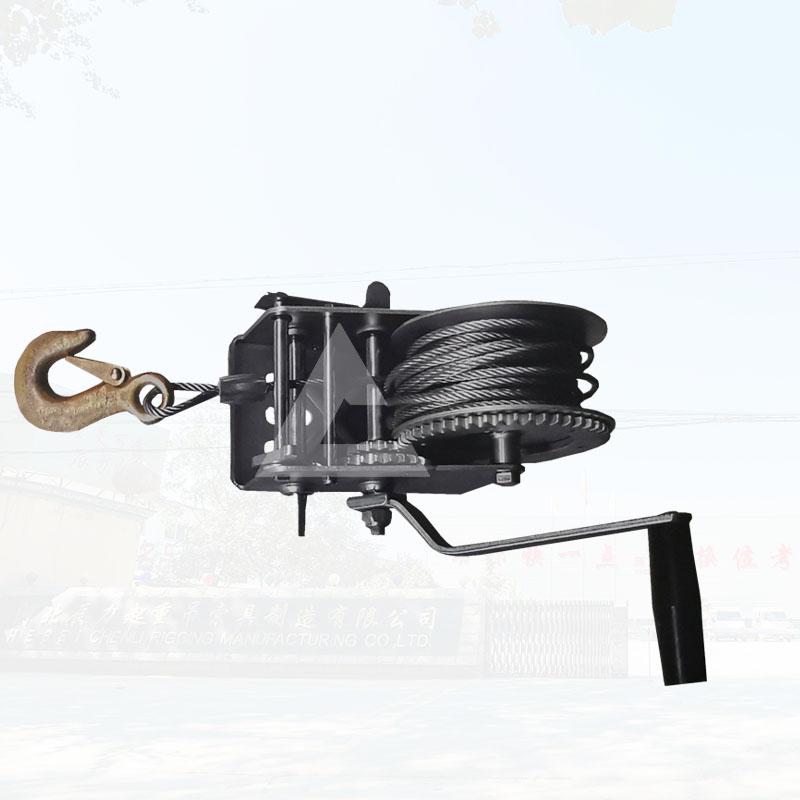 一般下水道、礦井這樣的環境空間比較小,人們不能使用大型的機械進行工作,這個時候可以選擇牽引工具手動絞盤和救援三腳架配合來完成工作??梢韵劝训V用手搖絞車安裝到救援三角架上,然后工人穿上防墜器,佩戴好后,通過上面工人不斷的搖動手動絞車的手柄,來慢慢的下降,使得進入井下工作的工人,能夠平安的降落到井下。起重搬運機械廠家撼馬為滿足不同客戶的需求,生產了各種型號的手搖絞盤,方便客戶使用。